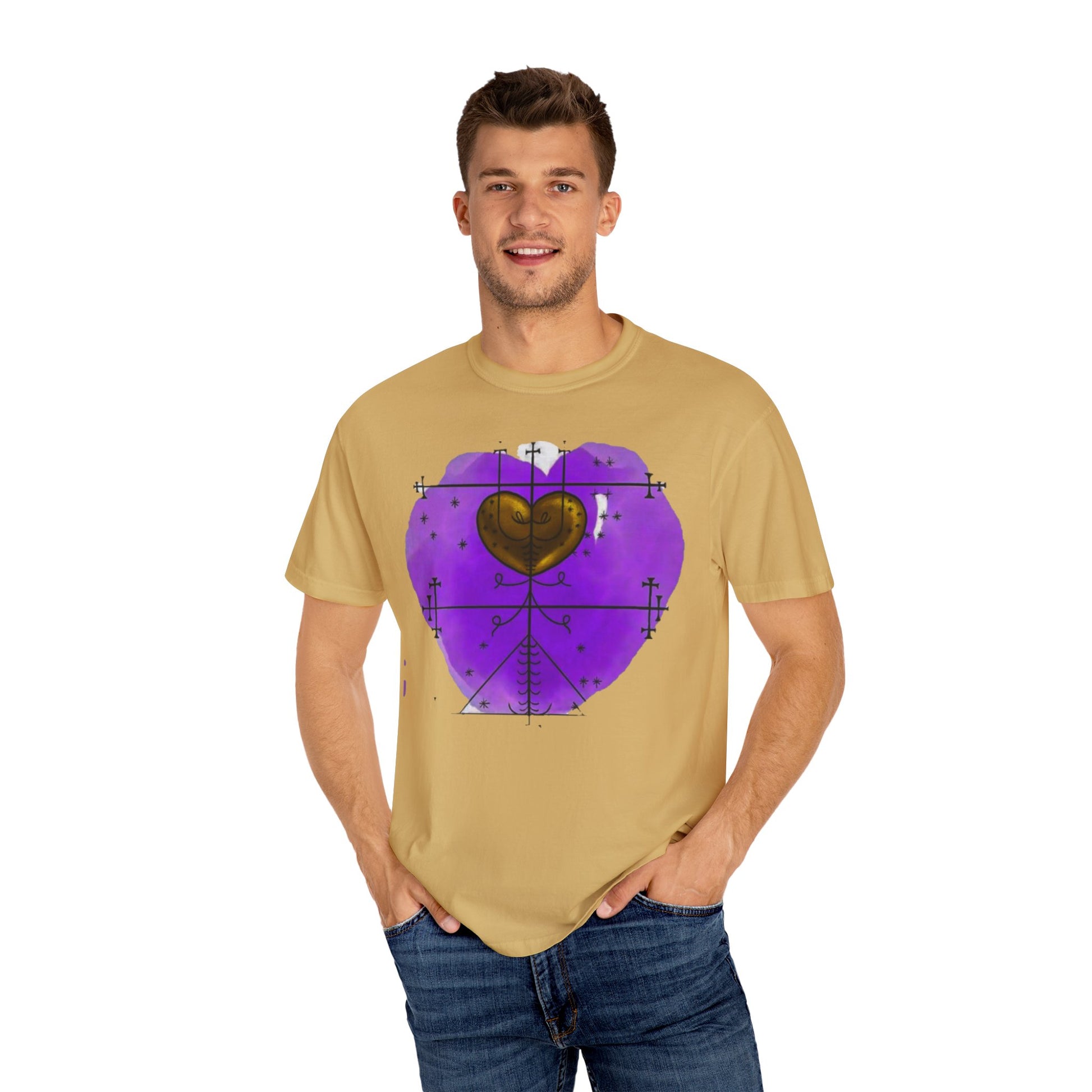 Crafted from premium, soft cotton for everyday comfort, the design fuses traditional Haitian Vodou symbols with bold, modern streetwear vibes. Whether you wear it for spiritual connection, cultural pride, or just pure style, this piece carries more than fashion — it carries respect.